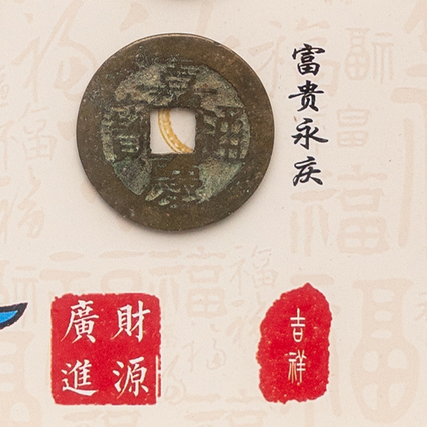 戴葆庭钱币文化博物馆出品“钱到家”文创相框与礼盒,甄选馆藏乾隆、嘉庆、道光三帝通宝,以馆藏钱币原物为蓝本精心编篆呈现。“乾道嘉”谐音“钱到家”,寓意“乾天中日、运走昌隆、家合平安、富贵永庆”。古钱外圆内方纳天地人三才,历经百年流通凝聚阳气,兼具驱邪避煞、聚宝招财之吉意。器物以传统装帧工艺打造,将古币文化与新春祝福相融,是兼具收藏价值与文化底蕴的馈赠与陈设佳品。