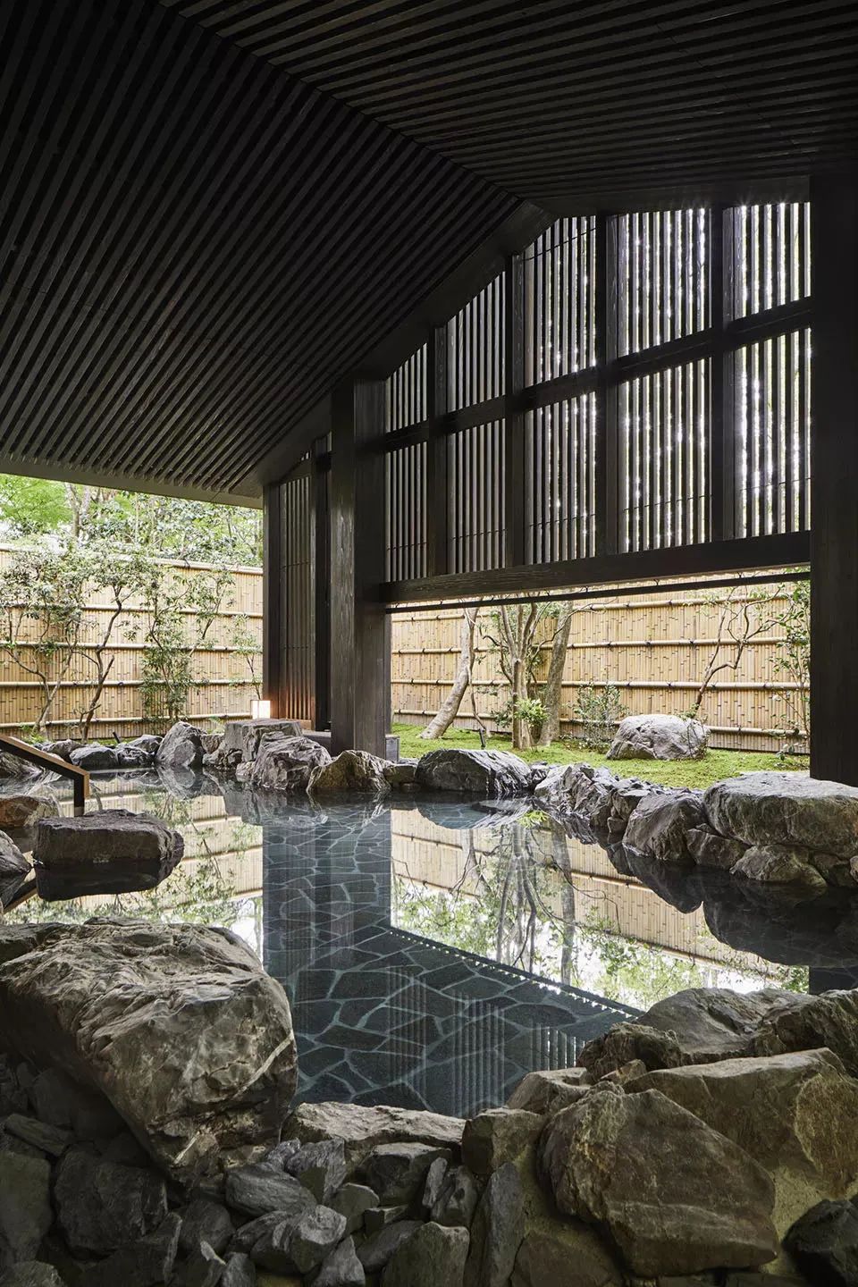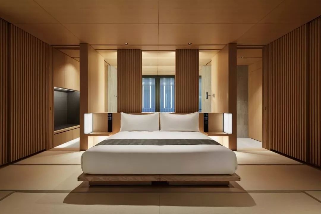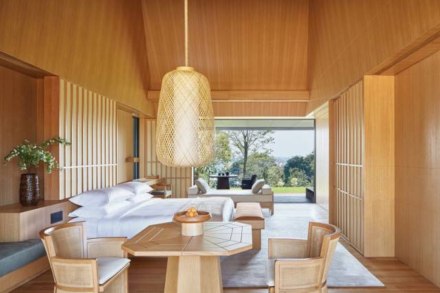 安缦京都的庭阁以极简几何线条营造通透效果,借当代美学向传统日式旅馆建筑致敬,令室外空灵景致一览无遗。室内空间宽敞明亮,平和安静,透过每一处巧思细节让人放松、沉淀。