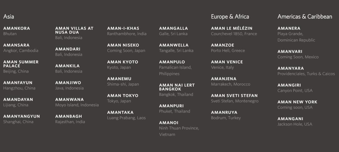 在旅游圈中,流传着一个神秘的名字—“安缦”。甚至,安缦还催生了一个名为“安缦痴(Aman Junkie)”的群体,他们每次度假总是寻找不同的安缦度假村来体验,他们把度假村视为旅行目的地,住遍所有的安缦度假村成为了他们最大心愿。