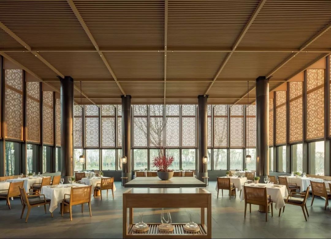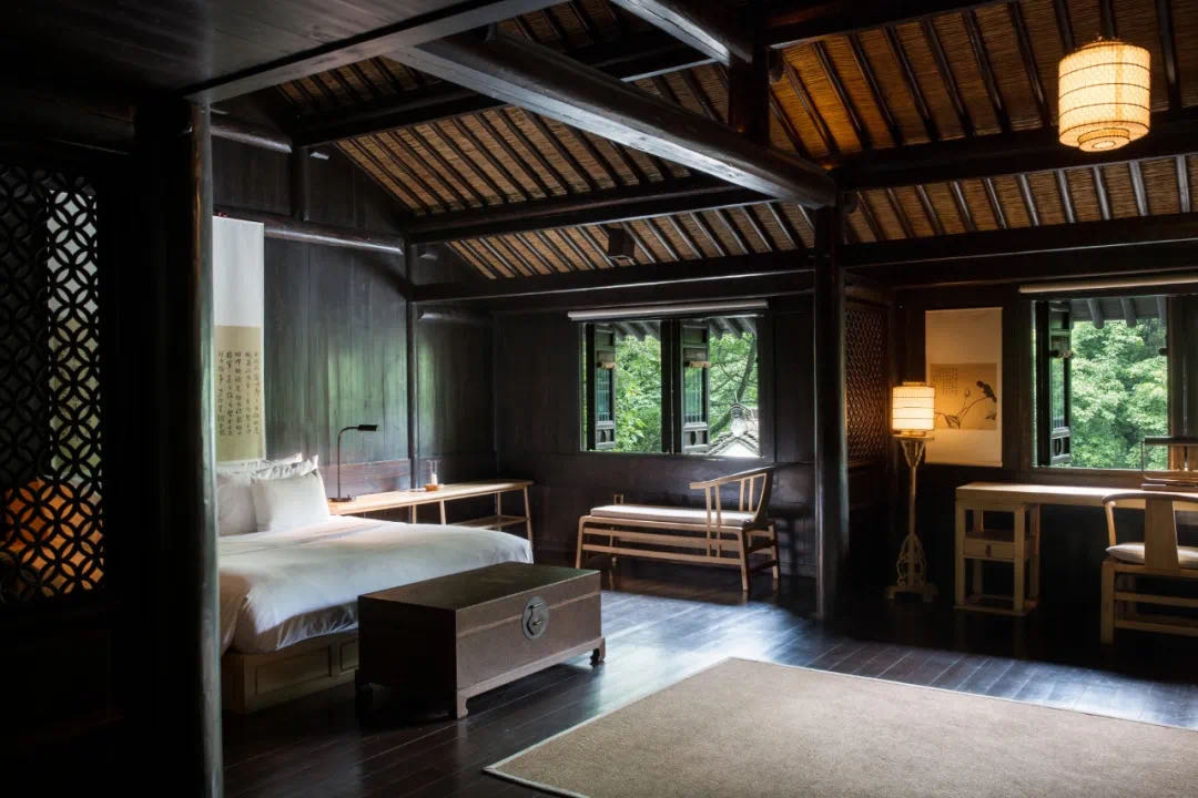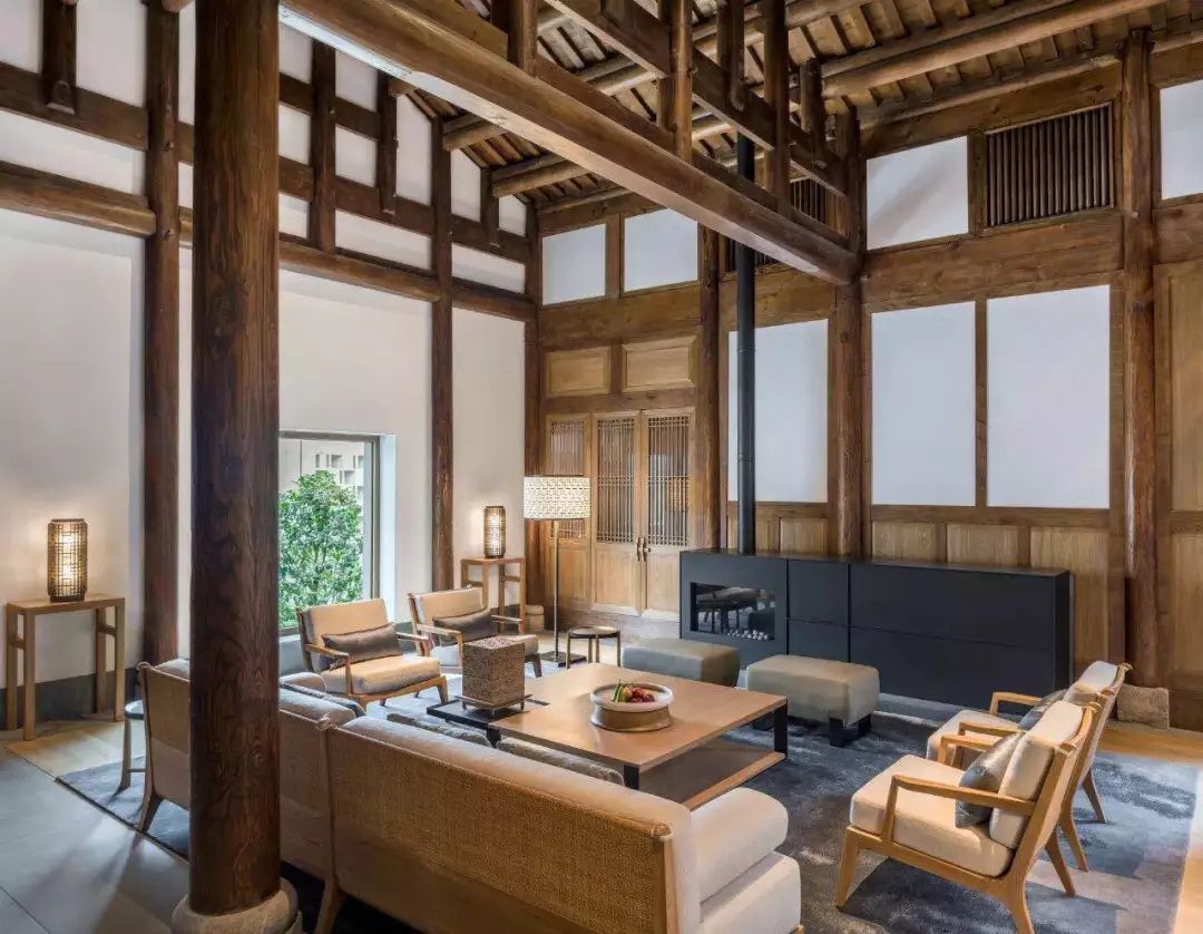被保护下来的的明清古宅,经悉心迁建与扩建,安放于祥和的树林中,营造出一座跨越季节的怡人静居。每一块古老的石砖都被重新整理并组合,创造出一种舒适的古与新的平衡。樟树林宁静而祥和,投映出充足的光线,与使用木头、石头与竹子完成的室内空间相呼应。