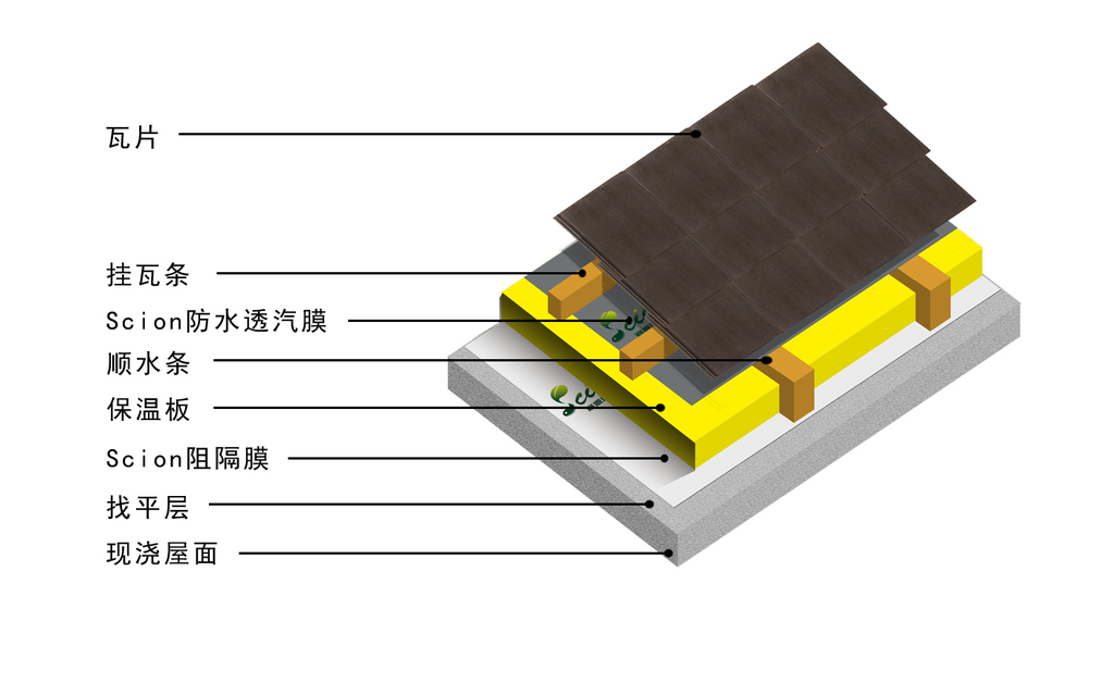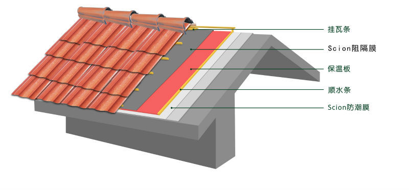 Scion阻隔膜是由抗老化层+金属铝箔层+复合层+纤维层通过热熔复合技术层压而成的。是一款高效的隔热保温产品。它是根据铝箔的低放射率来实现隔热保温功效的。