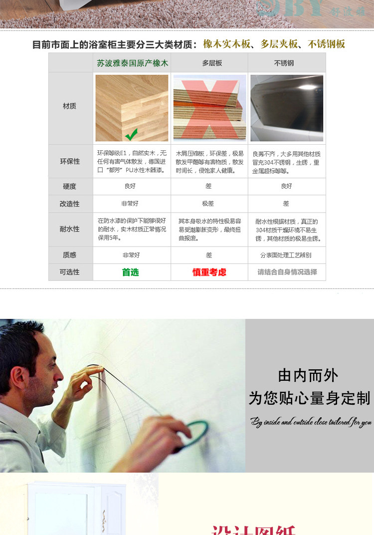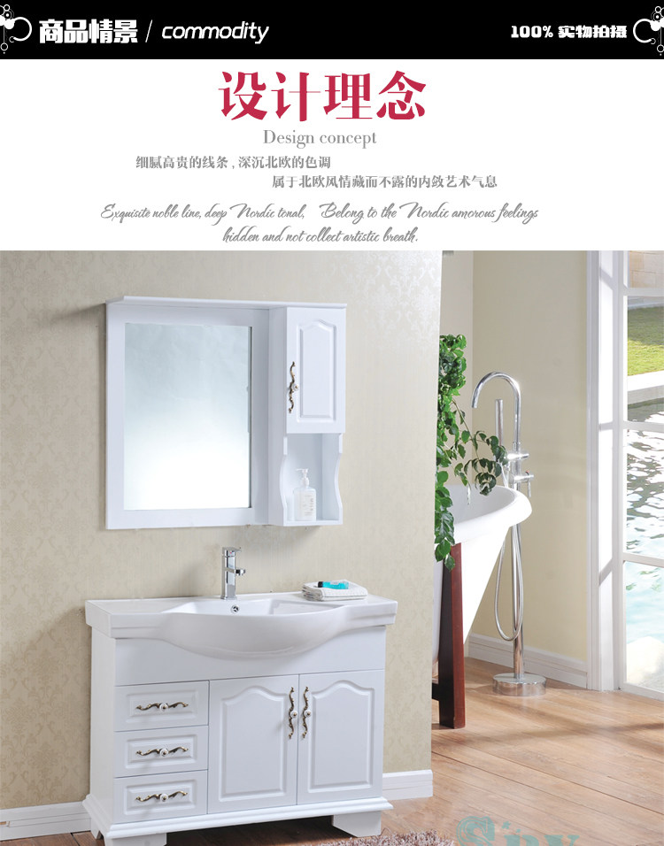 浴室柜两边宽度为35-36cm,中间宽度为48cm
